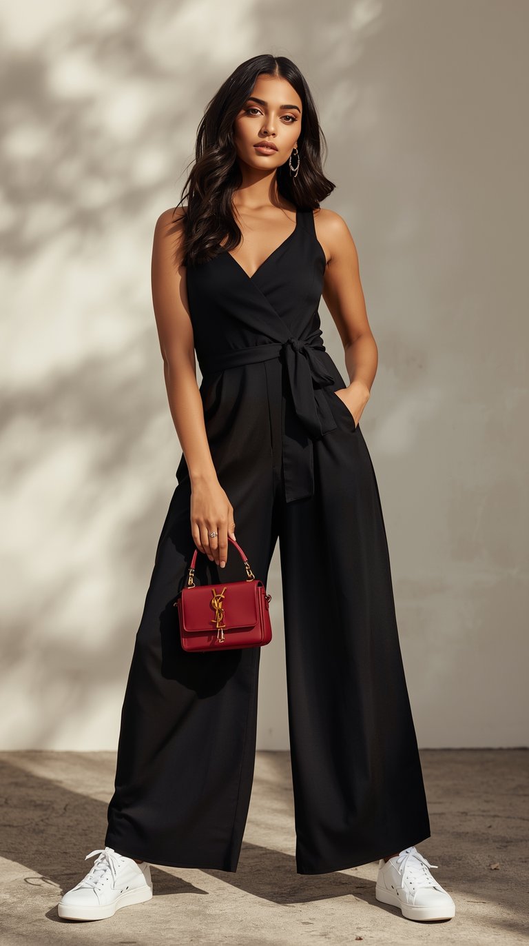 👗 Jumpsuit Outfit + Cherry Red Bag (One-Piece Power Styling)