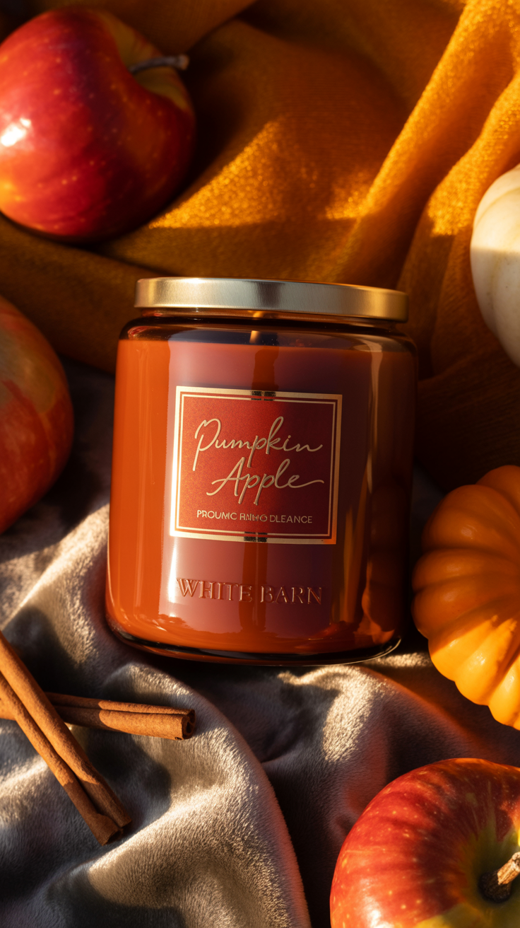 For those who prefer something lighter and fruitier the White Barn Pumpkin Apple Candle is a perfect balance of sweet pumpkin and crisp red apple. It’s clean, fresh and feels like a fall orchard breeze.
