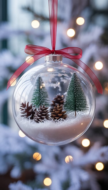 This ornament is a classic for a reason! It gives your tree a delicate, high-end look that seems straight out of a boutique store. The best part? It’s fully customizable—you can add glitter, tiny trees, pinecones, or even a small family photo. It’s also incredibly beginner-friendly, requiring no special tools or skills.