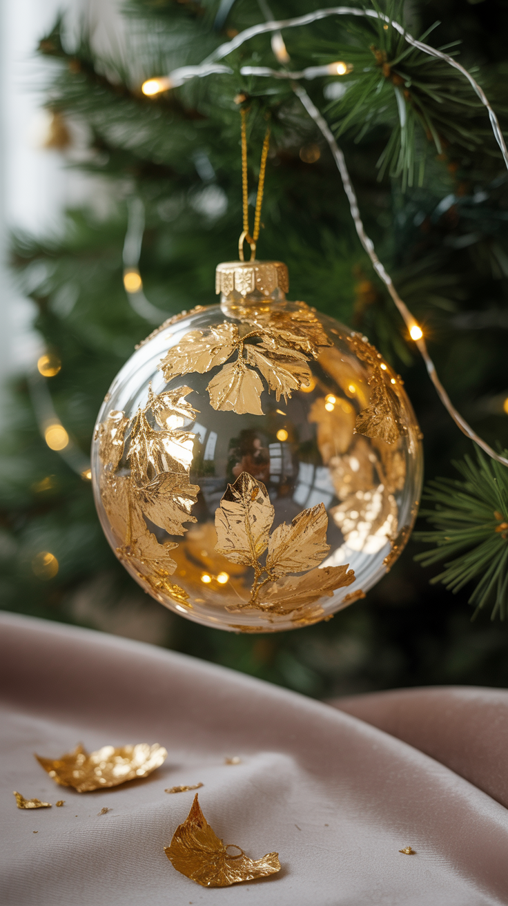 For a chic two-tone look, only cover half the ornament with gold leaf and leave the other half clear or painted.