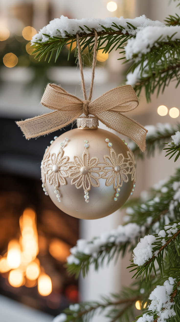 Lace instantly adds a vintage, romantic feel to your ornaments. Wrapping a simple bauble in delicate lace makes it look like a designer piece while keeping it soft, feminine, and elegant. Perfect for farmhouse, shabby-chic, or classic holiday décor.