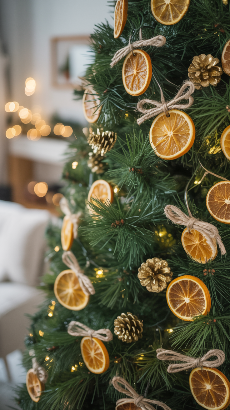 Dried orange slices add a rustic, natural charm to your tree while filling your home with a subtle, festive scent. These ornaments look expensive and artisanal, perfect for farmhouse or cozy holiday décor. They’re budget-friendly and double as a fun activity to make with kids or friends.