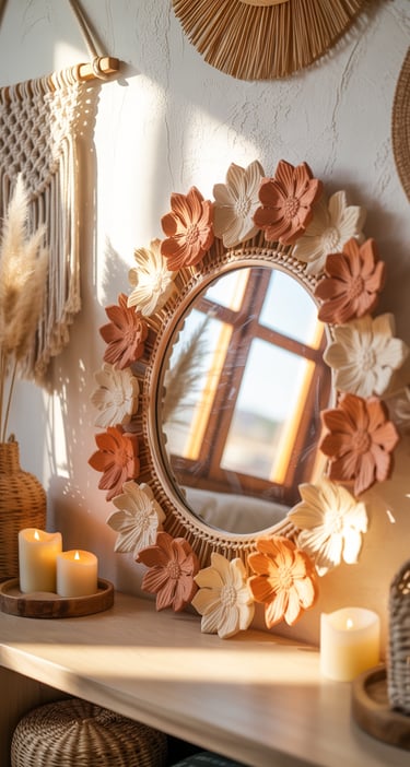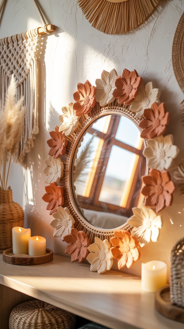 🌺 4. Boho Terracotta Flower Mirror (Earthy & Cozy)