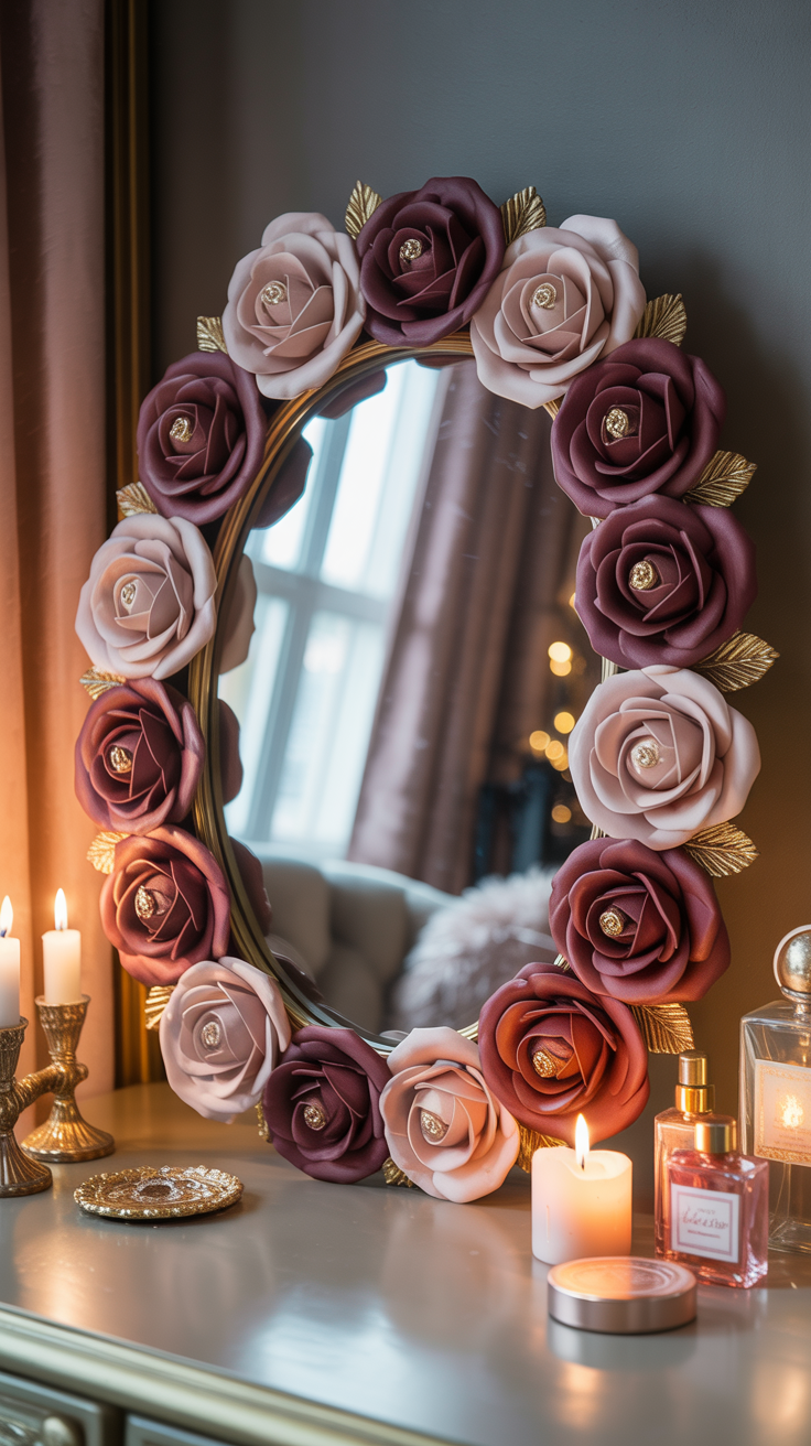 🌹 5. Gold-Trimmed Rose Mirror (Glam & Luxe)