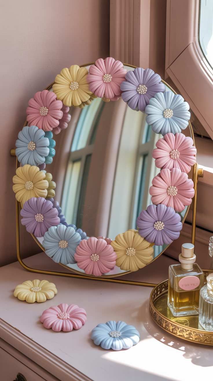🌼 1. Pastel Daisy Frame Mirror (Cottagecore & Dreamy)