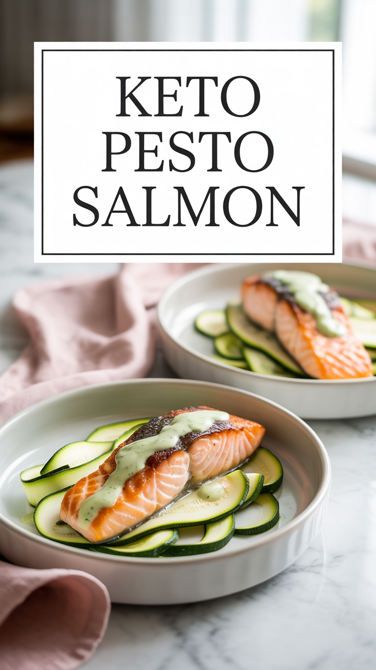 Creamy Pesto Salmon Over Zucchini Ribbons 🌿🐟